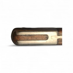 Poignée : Bois (noyer ou hêtre) avec deux rivets visibles, pommeau typique M1889 avec bouton de fixation et mortaise pour le canon du fusil.