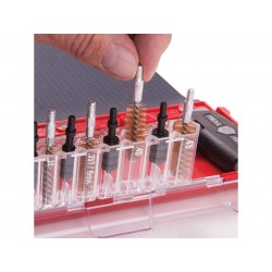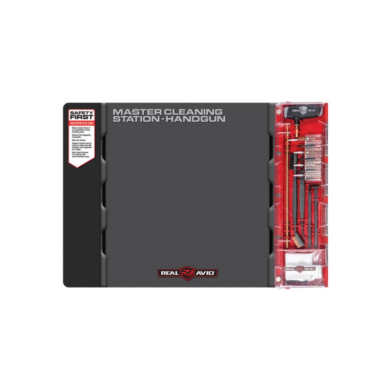Améliorez votre expérience de nettoyage avec la première station de nettoyage principale du monde de l’arme de poing de Real Avid. Conçu pour le nettoyage complet des pistolets de calibre 22/9mm/. 357/. 38/. 40/. 45. Il combine un tapis de nettoyage de nouvelle génération avec un kit de nettoyage intelligemment conçu, rempli d’un ensemble complet d’outils de nettoyage spécifiques aux pistolets de poing. Il maintient les pièces de pistolet faciles à perdre organisées pendant que vous travaillez. Il fournit une grande zone de travail pour un pistolet complètement démonté mais roule pour le stockage compact dans le sac inclus.