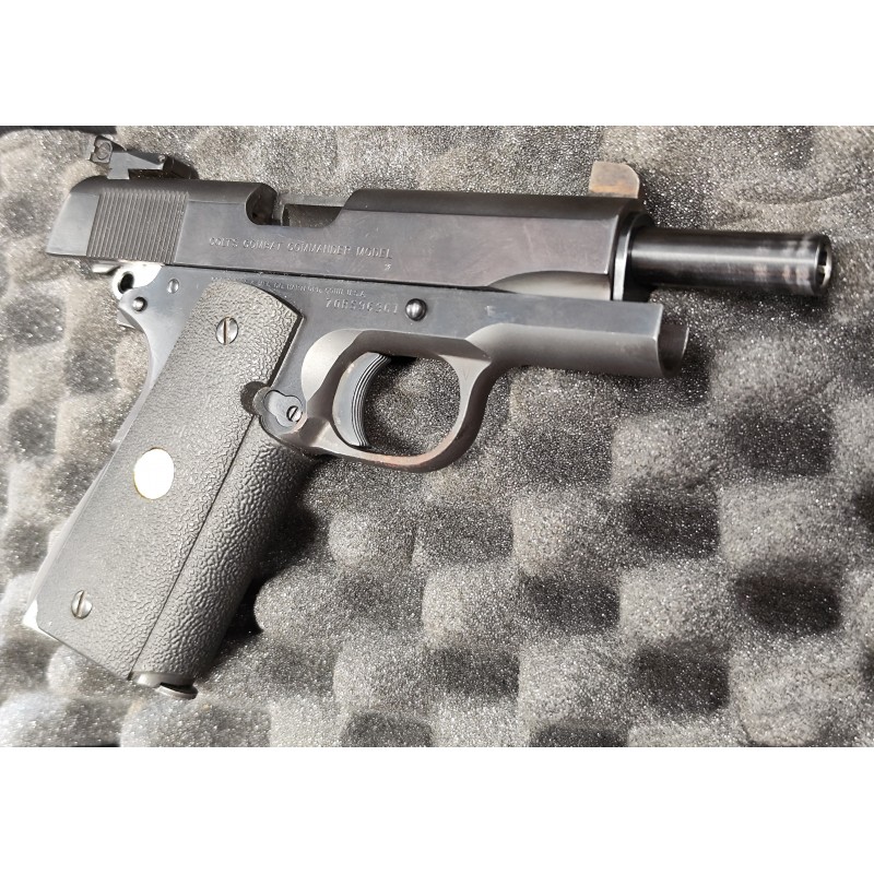 C'est un très beau Colt, chambré en 9mm Luger, l'arme n'a connu qu'un précédant propriétaire, son état général est très bon, elle a environ 800 coups à son actif ce qui est peu pour ce modèle.